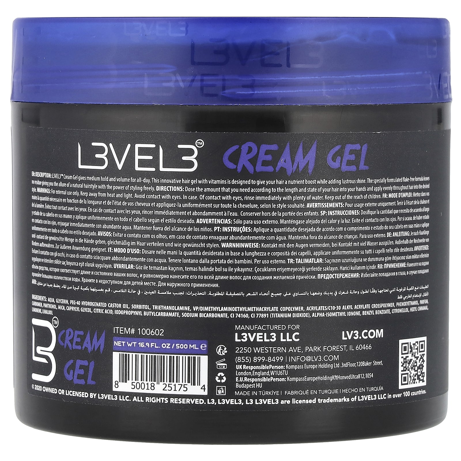 Level 3 Gel Creme Infusão de Vitamina B5 500 ml (169 fl oz) – Level 3 Cuidados Pessoais Cuidados Masculinos Produtos para Cabelo Masculino Cabelos Modelagem dos cabelos Gel.