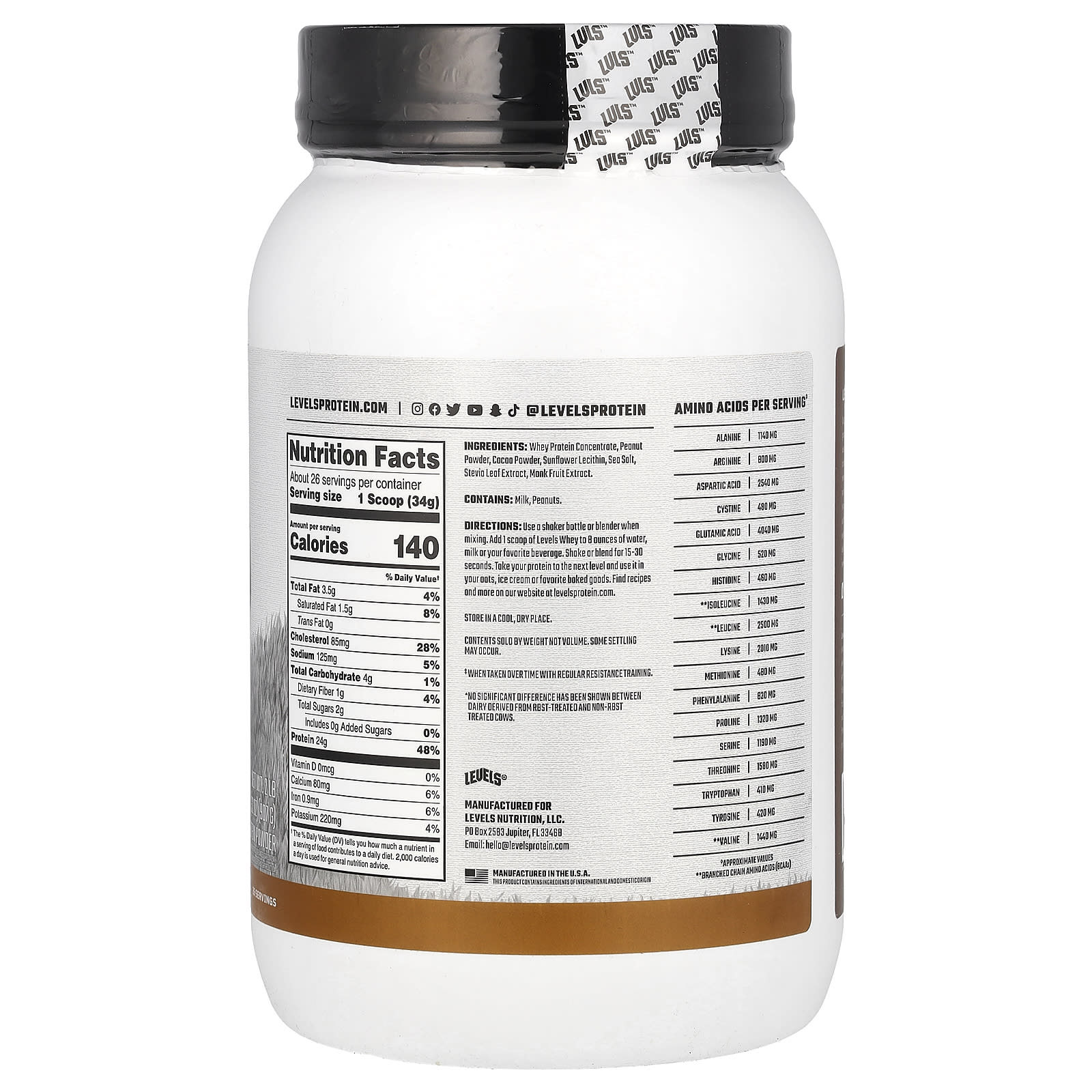 Levels Proteína Whey de Gado Criado no Pasto Manteiga de Amendoim com Chocolate 907 g (2 lb) – Levels Nutrição Esportiva Proteína Proteína Whey.