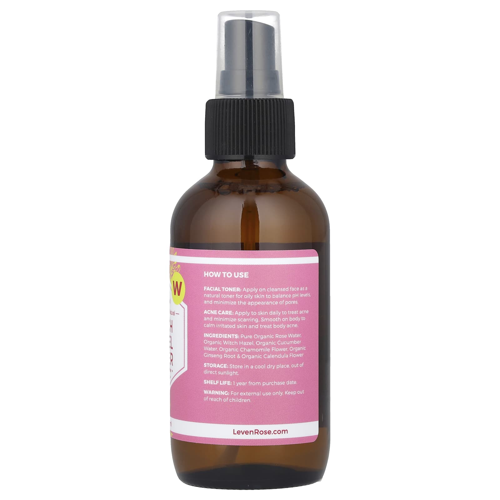 Leven Rose 100% Orgânico e Natural Tônico de Hamamélis 118 ml (4 fl oz) – Leven Rose Beleza Limpeza Facial Loções tônicas Beleza por Ingrediente Hamamélis.