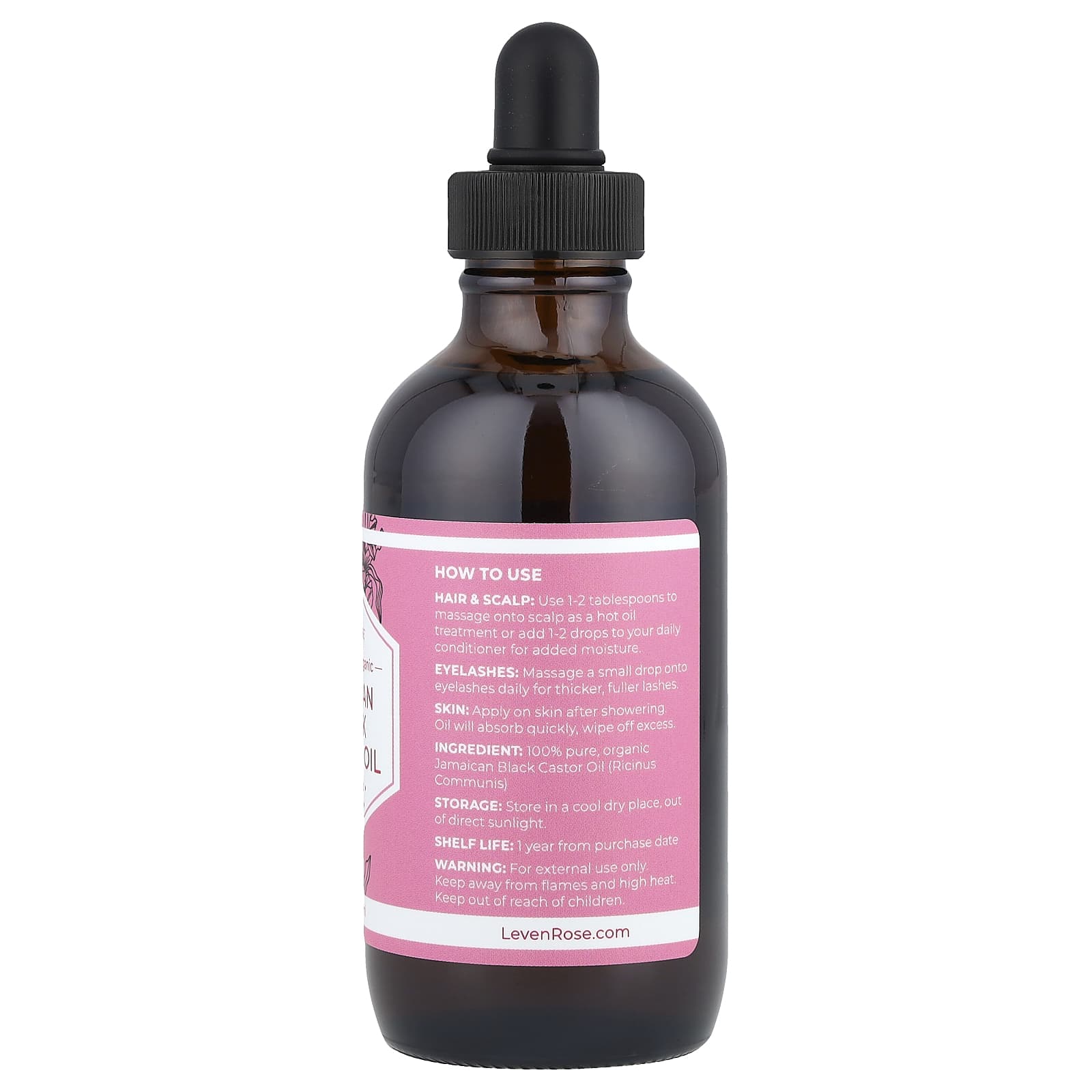 Leven Rose Óleo de Rícino Preto Jamaicano 100% Puro e Orgânico 118 ml (4 fl oz) – Leven Rose Cuidados Pessoais Cuidados com o Corpo Óleos corporais e de massagem Óleo de Rícino.