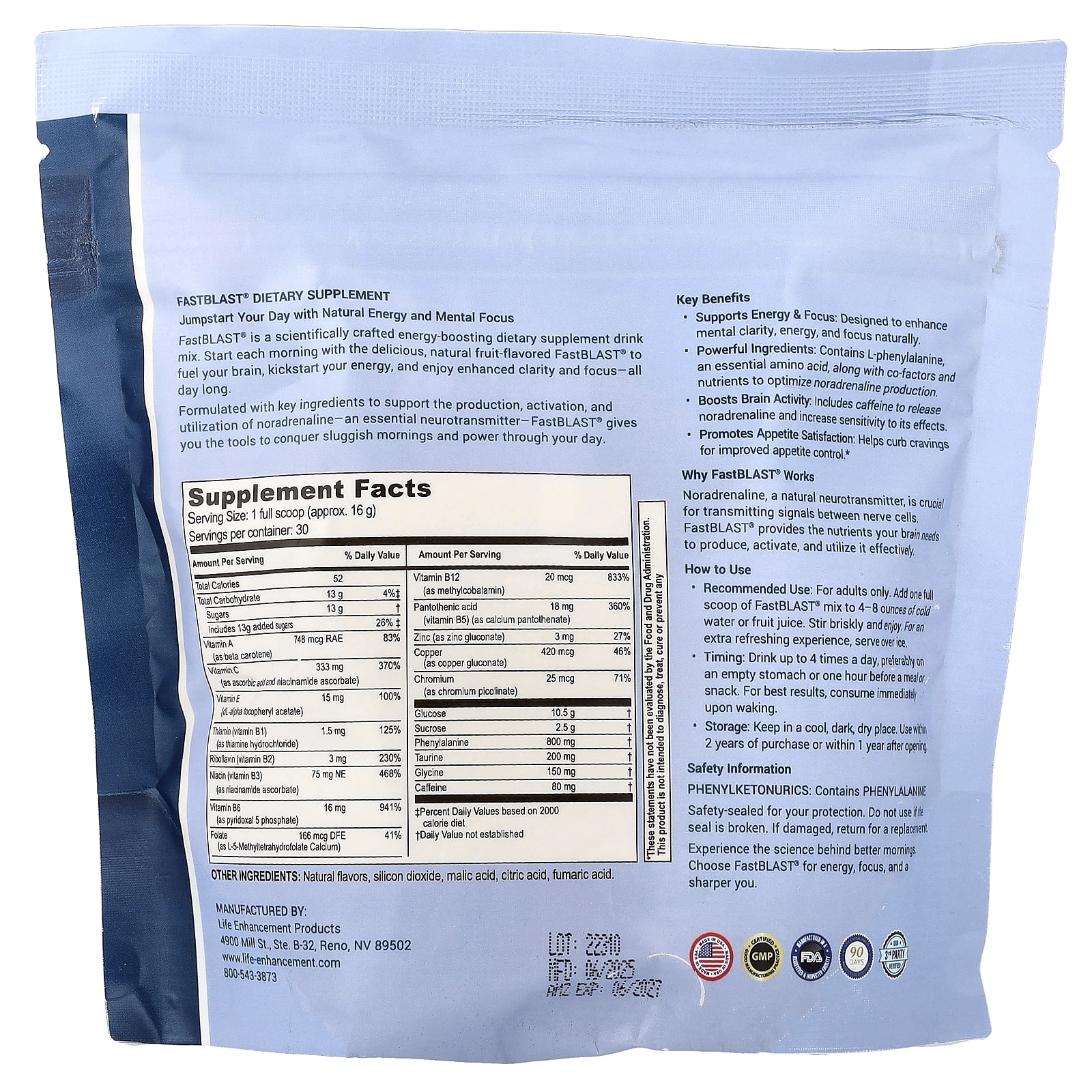 Life Enhancement FastBLAST™ 480 g – Life Enhancement Suplementos Cérebro e Cognição Fórmulas para Foco e Memória.