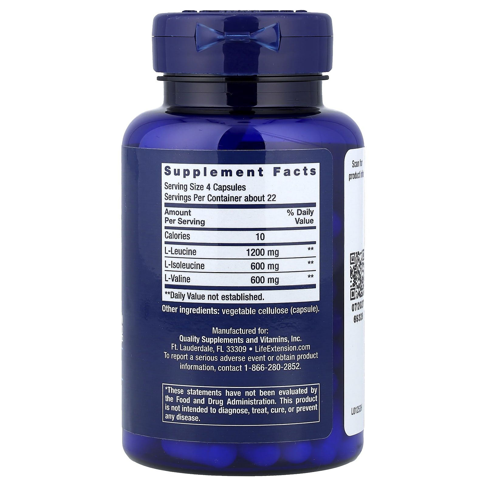 Life Extension Aminoácidos de Cadeia Ramificada 90 Cápsulas – Life Extension Suplementos Aminoácidos BCAA Misturas de aminoácidos.