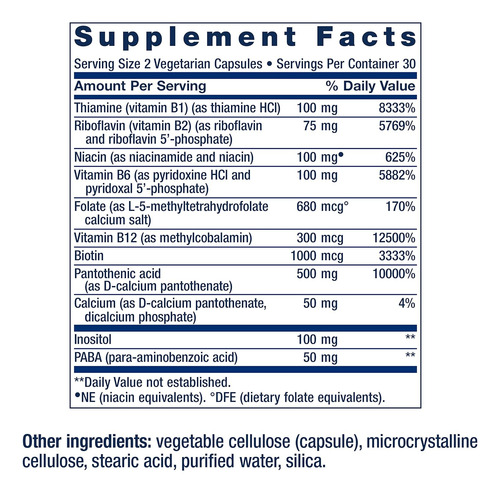 ideais: cada cápsula fornece dosagens ideais de vitaminas B para ajudar a atender às necessidades nutricionais diárias e apoiar o metabolismo energético, a função do sistema nervoso e a saúde celular. Vitaminas B