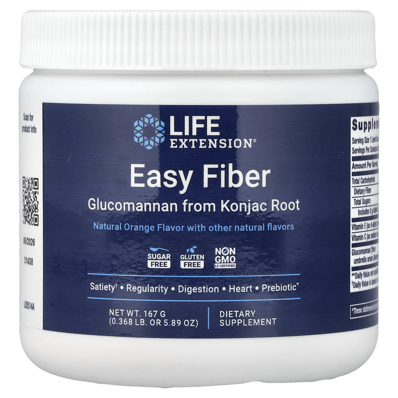 Life Extension Easy Fiber Laranja Natural 167 g (589 oz) – Life Extension Suplementos Saúde Intestinal Fibras Misturas de Fibras.