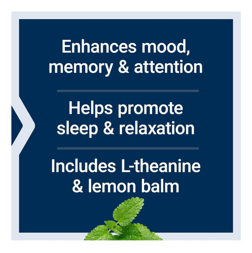 • Acalme-se com erva-cidreira ‘ Este suplemento premium contém erva-cidreira, uma erva da família das mentas, que apoia uma resposta saudável ao stress, o humor e padrões de sono saudáveis.