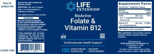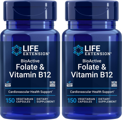 Life Extension BioActive Folate & Vitamin B12, 150 cápsulas vegetarianas (pacote com 2)