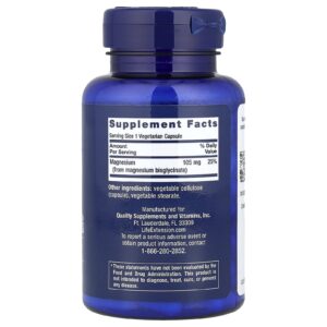 Life Extension Glicinato de Magnésio 90 Cápsulas Vegetarianas (105 mg por Cápsula) – Life Extension Suplementos Minerais Magnésio Glicinato de Magnésio.