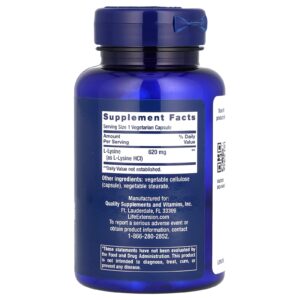 Life Extension, L-lisina, 620 mg, 100 Cápsulas Vegetarianas – Life Extension Suplementos Aminoácidos Lisina Saúde Gripe e Resfriado.