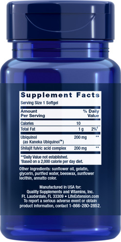 PrimaVie® Shilajit fulvic acid complex 200 mg,Ubiquinol (as Kaneka Ubiquinol™) 200 mg |