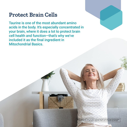 • PROTEGE AS CÉLULAS DO CÉREBRO – A taurina é um dos aminoácidos mais abundantes no corpo. Está especialmente concentrado no cérebro, onde contribui muito para proteger a saúde e a função das células cerebrais ' é por isso que o incluímos como ingrediente final em Mitochondrial Basics.