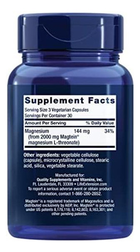 Life Extension Neuro-mag Magnésio L-treonato, 90 Cápsulas Ve