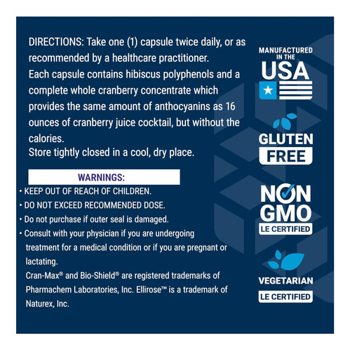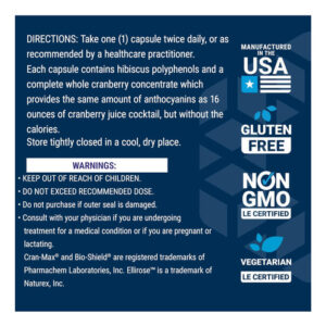 • Um impulso de extrato de hibisco ‘ o Cran-Max otimizado fornece a fruta inteira, para que você obtenha todos os ingredientes ativos dos cranberries para apoiar a sua saúde. Além disso, adicionamos extrato de hibisco para complementar os incríveis benefícios e proteção antioxidante do cranberry.