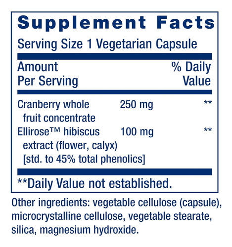 • Benefícios do suco de cranberry, sem calorias ‘ Cada cápsula contém polifenóis poderosos, ácidos orgânicos e antioxidantes para benefícios à saúde equivalentes a quatro copos de coquetel de suco de cranberry, sem calorias ou adição de açúcar.