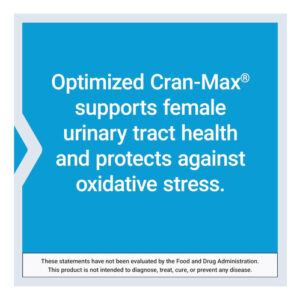 Optimized Cran-Max® é a fórmula preferida dos clientes e a melhor da categoria para a saúde urinária feminina. Ele contém 250 mg de potente concentrado de frutas inteiras de cranberry mais 100 mg de extrato de hibisco complementar para apoiar um trato urinário feminino saudável e proteger contra o estresse oxidativo. O Cran-Max® otimizado contém 60 cápsulas vegetarianas e sem glúten, o suficiente para um suprimento de 30 dias. Esta fórmula é feita com ingredientes 100% não OGM e é fabricada nos Brasil.