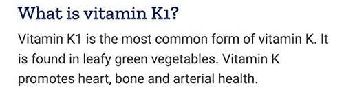 ? Inclui os três tipos de vitamina K comumente encontrados em vegetais verdes, queijos e carnes