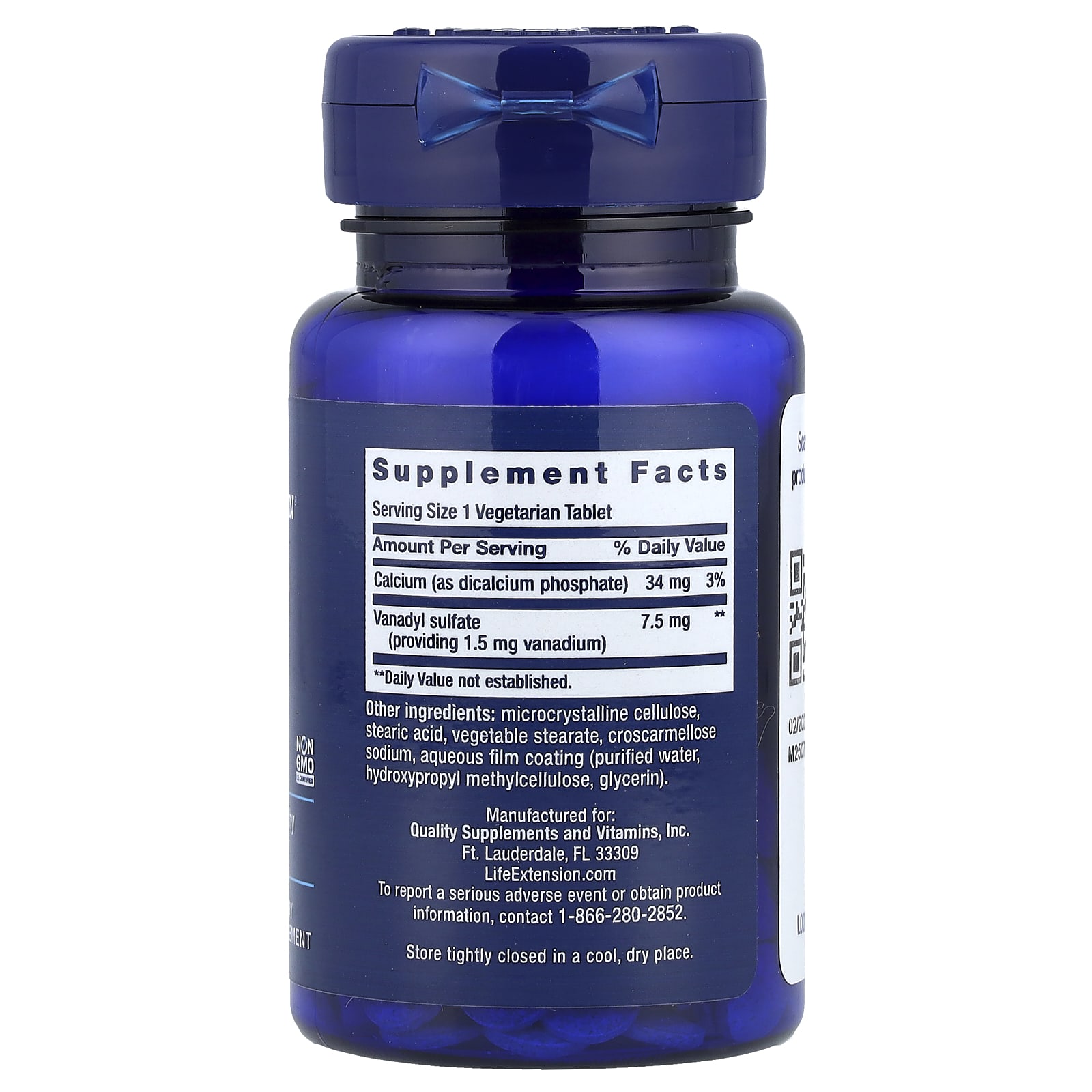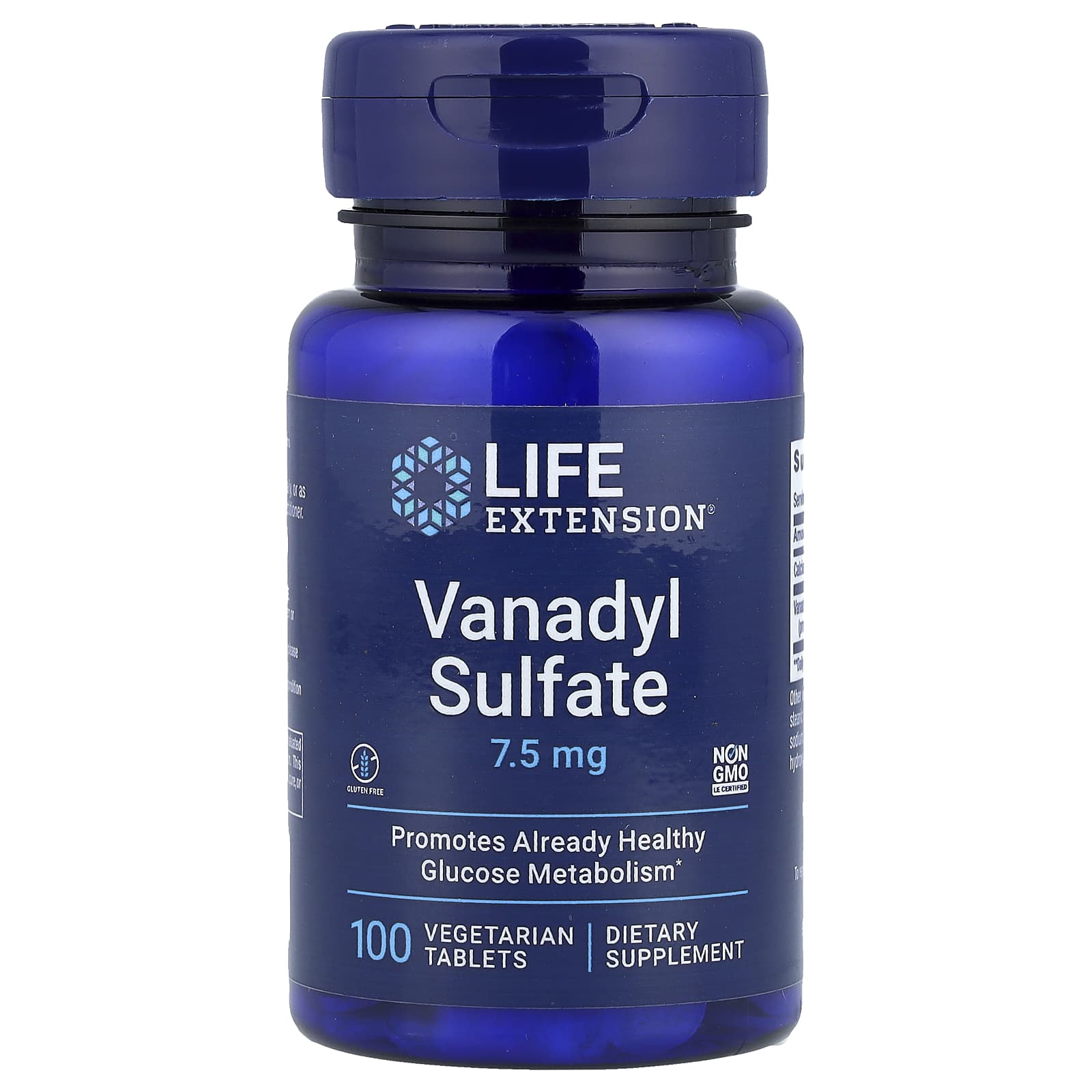 Life Extension Vanadyl Sulfate 100 Comprimidos Vegetarianos – Life Extension Suplementos Minerais Vanádio Microminerais.