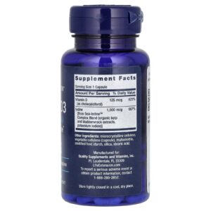 Life Extension Vitamina D3 com Iodo Marinho 125 mcg (5.000 UI) 60 Cápsulas – Life Extension Suplementos Vitaminas Vitamina D Minerais Iodo.