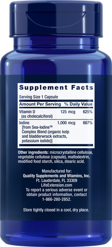 Vitamina D3 com Iodo Marinho 5.000 UI 60Cps Life Extension |