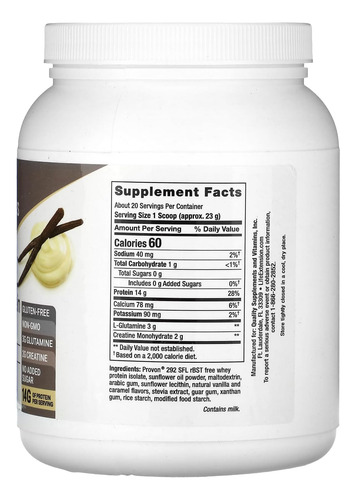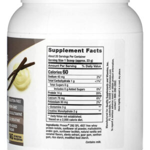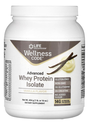 O Wellness Code® Advanced Whey Protein Isolate (Vanilla) é uma fórmula para o crescimento muscular pós-treino e apoio à saúde imunológica. Ele fornece 14 gramas de proteína, além de altos níveis de aminoácidos de cadeia ramificada, com carboidratos inferiores e gordura que o concentrado de soro de leite. Ele também possui 3 gramas de L-glutamina e 2 gramas de mono-hidrato de creatina por porção para ajudar a construir músculos magros, apoiar contra a quebra de proteínas e promover a saúde do sistema imunológico e o envelhecimento saudável. O Wellness Code® Advanced Whey Protein Isolate (Vanilla) contém 454 gramas ou 16 onças, o suficiente para um fornecimento de 20 dias. Esta fórmula é sem glúten, não tem açúcar adicional* e é feito com 100% de ingredientes não OGM. *Não é um alimento de baixa caloria.