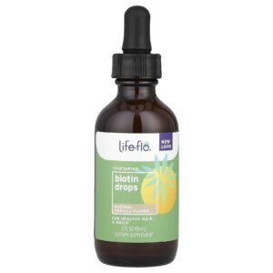 Life-flo Biotin Drops For Healthy Hair & Nails Natural Vanilla Flavor 10000 mcg 2 fl oz (60 ml) – Life-flo Suplementos Cabelos, Pele e Unhas Vitamina B7 (Biotina).