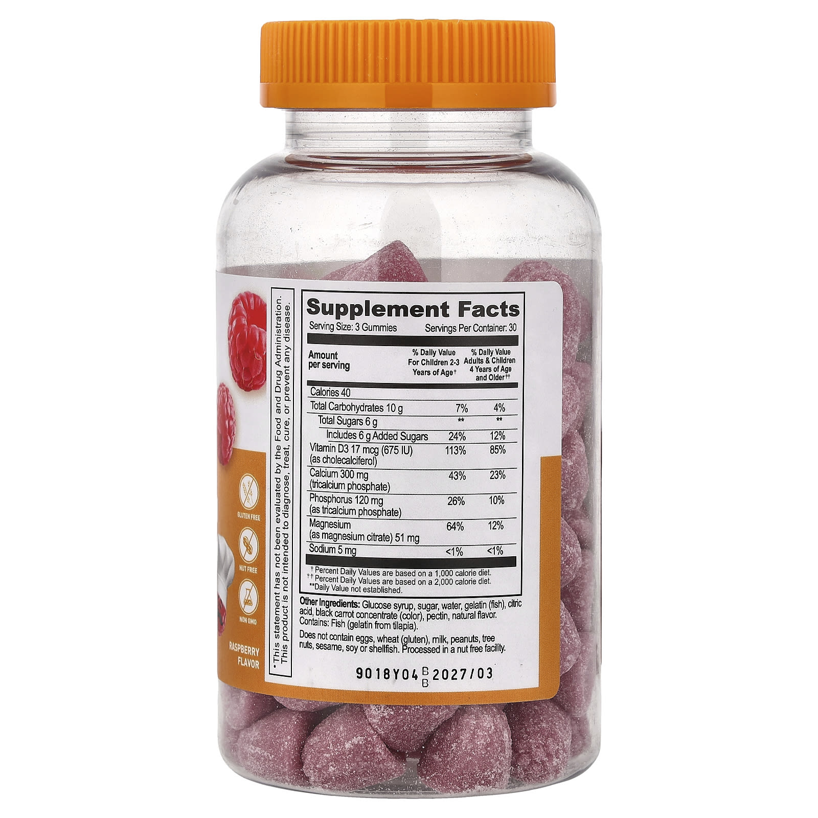 Lifeable Gomas de Cálcio e Magnésio + Vitamina D3 para Crianças Framboesa 90 Gomas
