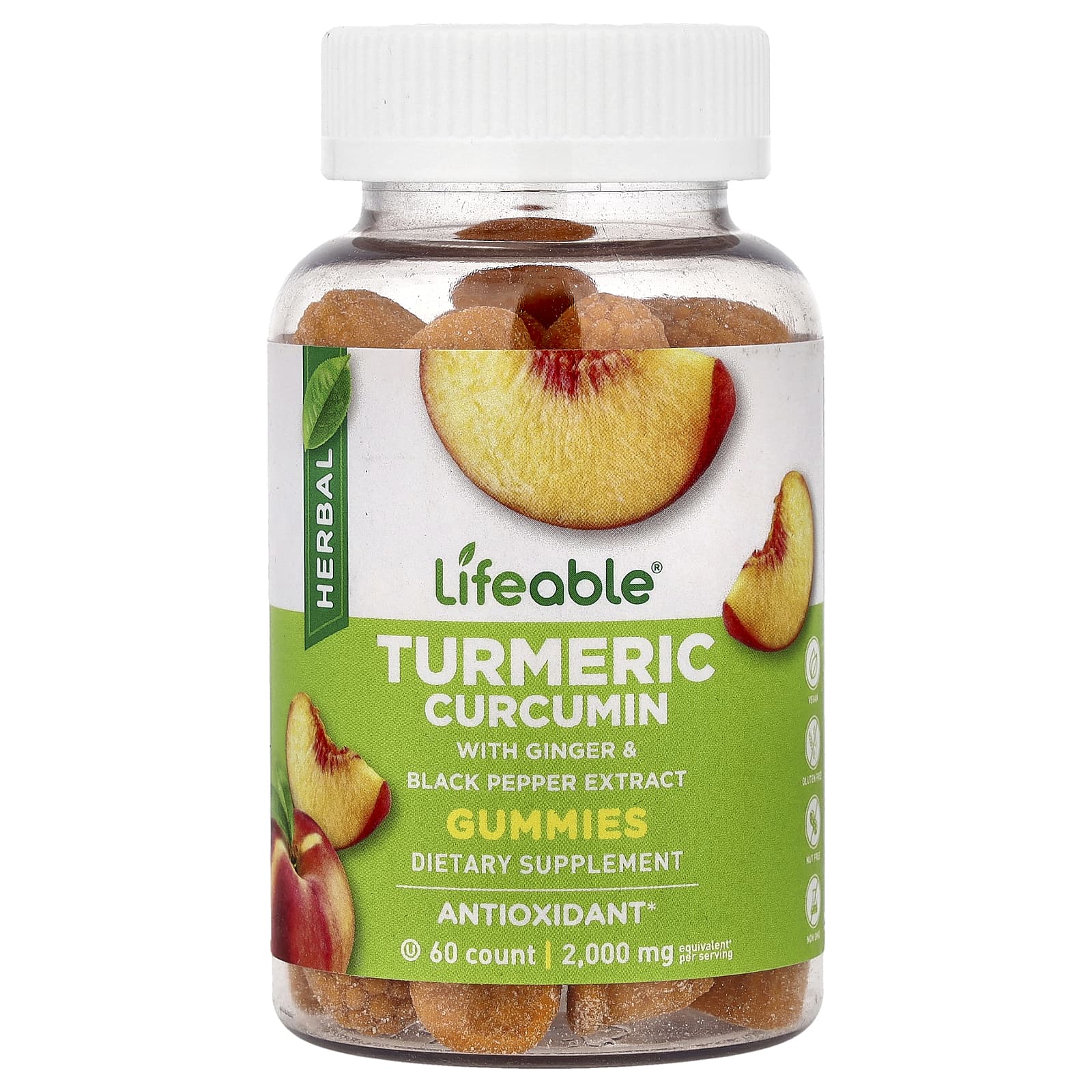 Lifeable Gomas de Curcumina e Cúrcuma Pêssego 60 Gomas