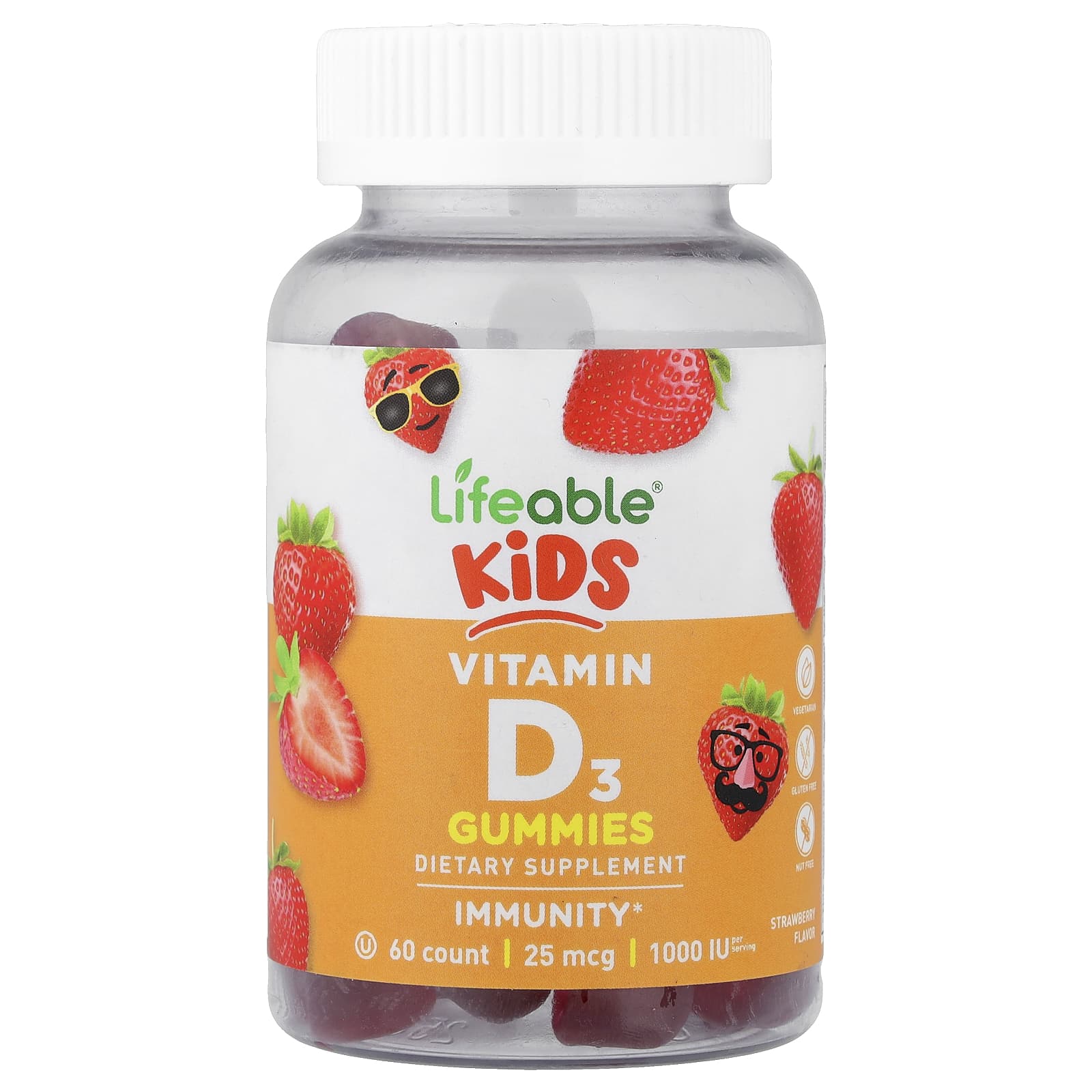 Lifeable Gomas de Vitamina D3 para Crianças Morango 60 Gomas – Lifeable Bebês e Crianças Saúde Infantil Vitaminas para Crianças Vitamina D para Crianças.
