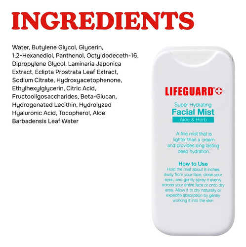 Névoa facial superhidratante LIFEGUARD Aloe e ervas, spray facial hidratante para todos os tipos de pele, hidratante facial leve 1,25 fl. oz.