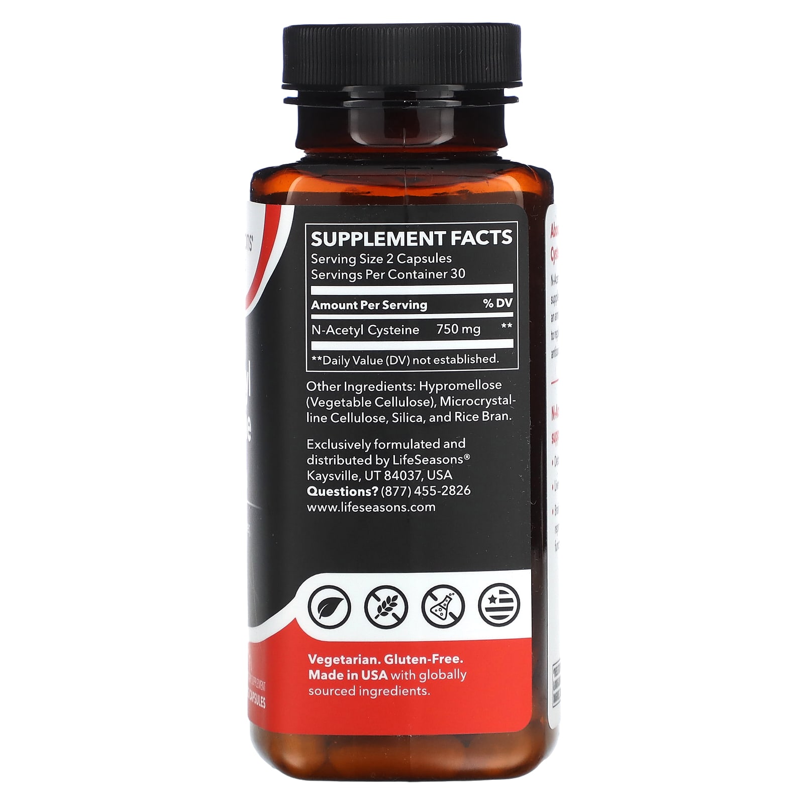 LifeSeasons Acetilcisteína 60 Cápsulas Vegetais (375 mg por Cápsula) – LifeSeasons Suplementos Antioxidantes N-Acetil Cisteína (NAC).