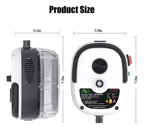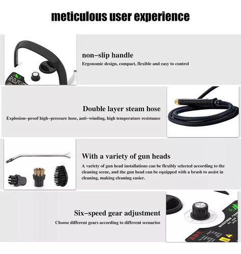 Limpador a vapor de alta pressão, limpador a vapor portátil de alta temperatura para banheiro de 2500 W com motor a vapor, umidade de vapor ajustável para cozinha doméstica para remover óleo e sujeira. Descrição:Pronto em 30 segundos. Você só precisa esperar algumas dezenas de segundos para produzir vapor estável. A água pode ser adicionada a qualquer momento durante a operação (tanque de água de 34 onças fluidas) e não há necessidade de esperar dezenas de minutos para que ela aqueça e libere a pressão como as tradicionais máquinas de limpeza a vapor em forma de chaleira. AçoInox 304, excelente qualidade. O aquecedor embutido de aço inoxidável não é apenas durável, mas também permite que o detergente ajude a melhorar a eficiência da limpeza. Com um umidificador a vapor, o vapor produzido possui diferentes teores de umidade.O vaporizador de 2500 W atinge temperaturas de até 212 graus Fahrenheit, dissolve facilmente o óleo e mata a maioria dos vírus e bactérias invisíveis.Observação: A temperatura do vapor é mais alta no bico e cai rapidamente após 2,5 cm de distância do bico. Portátil e compacto. Pesando cerca de 4 quilos, quase não exerce pressão sobre os braços. O tamanho compacto não é apenas bonito, mas também muito conveniente para guardar. Ninguém quer ter um ajudante tão bom em casa! É muito utilizado para limpar manchas de gordura de todos os cantos da cozinha, sujeira de áreas como azulejos de banheiros, além de limpar brinquedos e detalhes de carros.NOTA IMPORTANTE:1. Esta pistola de vapor não possui um interruptor de controle para iniciar ou parar a saída de vapor. Além disso, é recomendável usar luvas durante a limpeza, pois operar a pistola de vapor pode fazer com que a mangueira e o cabo do vapor aqueçam.2. Uma junta à prova dágua deve ser adicionada entre a pistola de vapor e o bocal de vapor/tubo de extensão.Especificações:Material: ABS, aço inoxidávelVolume da máquina: 190 x 150 x 130 mmPotência: 2500WComprimento do tubo de vapor: 2,2 mComprimento do cabo: 1,5 mNota: O produto possui duas especificações, Brasil e UE. Enviaremos as especificações correspondentes de acordo com a voltagem padrão da sua região (o Brasil envia as especificações para os Brasil por padrão). Se você tiver necessidades especiais, entre em contato conosco imediatamente após fazer o pedido na página do pedido (Minha (compra)). Deixe uma mensagem ao vendedor e conte-nos suas necessidades. Enviaremos os produtos de acordo com sua necessidade. Obrigado!Lista de pacotes:1 máquina de limpeza,1 bocal de cotovelo estendido,1 pincel grande,1 pincel pequeno,1 pequena escova de aço
