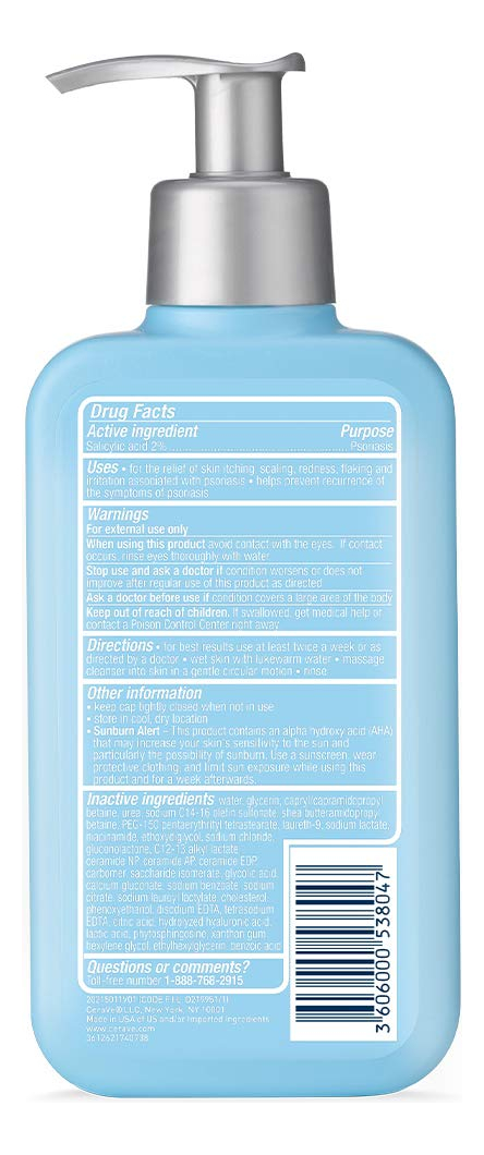 CeraVe Cleanser for Psoriasis Treatment With Salicylic Acid for Dry Skin Itch Relief & Latic Acid for Exfoliation Fragrance Free & Allergy Tested 8 Ounce – PSORIASIS BODY WASH Formulated to relieve, gently cleanse and exfoliate dry skin, itchy skin, rough and bumpy skin, and especially psoriasis-prone skin. Suitable for use as a face wash, hand soap, or body wash. – HYDRATING, MEDICATED FORMULA With Lactic Acid for gentle exfoliation, 2% Salicylic Acid to relieve skin itching, scaling, redness, flaking and irritation associated with psoriasis, Niacinamide to calm skin, and Urea to help moisturize. – SKIN CARE FOR PSORIASIS Massage CeraVe Psoriasis Cleanser into skin in gentle, circular motions with a washcloth or shower loofah. Can be paired with CeraVe Psoriasis Moisturizing Cream to moisturize & relieve. – 3 ESSENTIAL CERAMIDES Ceramides are found naturally in the skin and make up 50% of the lipids in the skin barrier. All CeraVe products are formulated with three essential ceramides (1, 3, 6-II) to help restore and maintain the skins natural barrier – DEVELOPED WITH DERMATOLOGISTS CeraVe Skincare is developed with dermatologists. Fragrance free, allergy-tested, and non-comedogenic. Recognized by the National Psoriasis Foundation. FSA Eligible & HSA Eligible