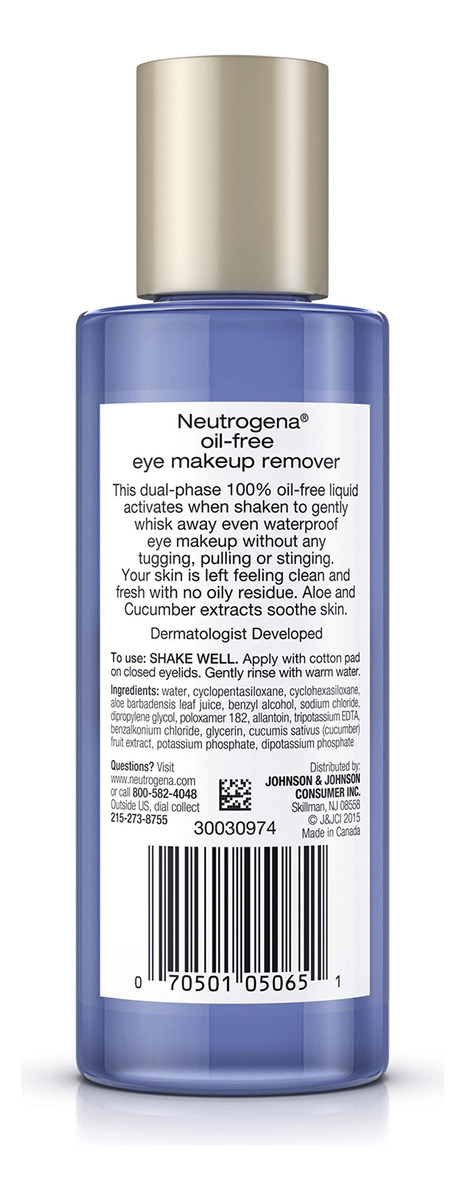 Neutrogena; removedor de maquiagem para os olhos sem óleo. Eficaz e gentil. Remove até mesmo o rímel à prova d'água. Sem resíduo oleoso.
