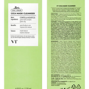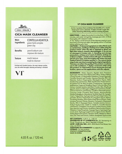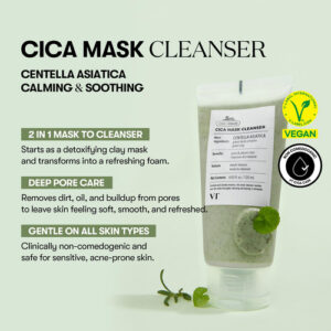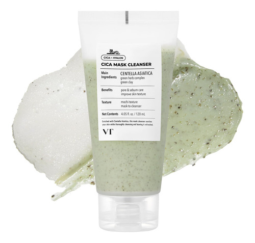 Limpador de máscara VT COSMETICS CICA com escova, sabonete facial para limpeza profunda de poros, removedor de cravos, centella asiática para pele sensível e propensa a acne, máscara de argila até espuma, tratamento de pele coreano (4,05 fl oz)