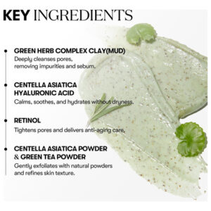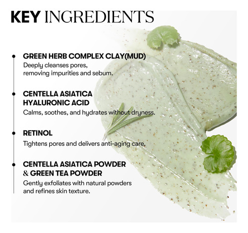 – CUIDADO COMPLETO DOS POROS COM RETINOL Contém retinol para refinar a textura da pele e ajudar a fechar os poros dilatados, enquanto os minerais argilosos esfoliam e controlam o excesso de oleosidade tudo em uma única etapa.