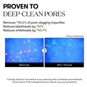 – PURIFICADOR PROFUNDO DOS POROS A argila verde e uma fórmula que não resseca atuam juntas para absorver o excesso de sebo e eliminar as impurezas, revelando uma pele mais lisa e clara sem rigidez.