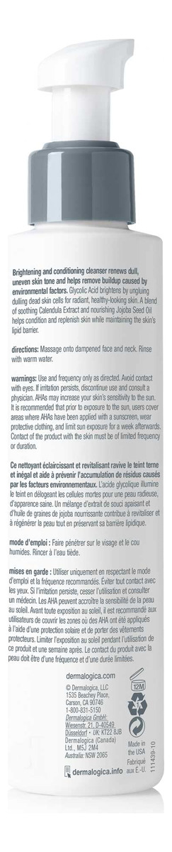 Brightening and conditioning cleanser renews dull, uneven skin tone and helps remove buildup caused by environmental factors. Glycolic Acid brightens by ungluing dulling dead skin cells for radiant, healthy-looking skin. A blend of soothing Calendula Extract and nourishing Jojoba Seed Oil helps condition and replenish skin while maintaining the skins lipid barrier. – Revitalizing Cleanser for Radiant Skin: Renew your skins natural glow with this brightening cleanser, effectively removing environmental buildup that leads to dull, uneven skin tone. – Glycolic Acid Brilliance: Infused with Glycolic Acid (AHA), this cleanser brightens your complexion by gently removing dead skin cells, revealing healthy and radiant skin. – Soothing and Nourishing Formula: Enjoy the calming benefits of Calendula Extract and the nourishing properties of Jojoba Seed Oil, leaving your skin conditioned and replenished, while maintaining its protective lipid barrier. – Build-Up Removal and Even Skin Tone: Experience a thorough cleanse that removes build-up and impurities, promoting a clearer and more even skin tone for a revitalized look. – Simple and Effective Usage: Achieve refreshed skin by massaging the cleanser onto dampened face and neck, then rinsing with warm water, making it a convenient addition to your skincare routine.