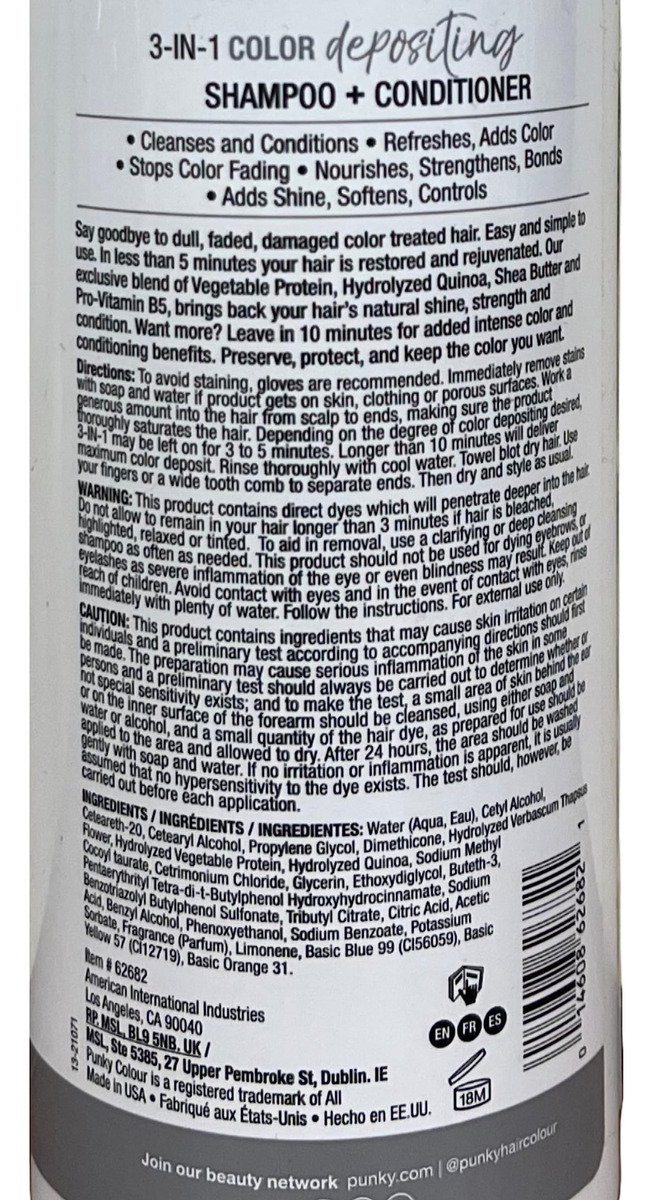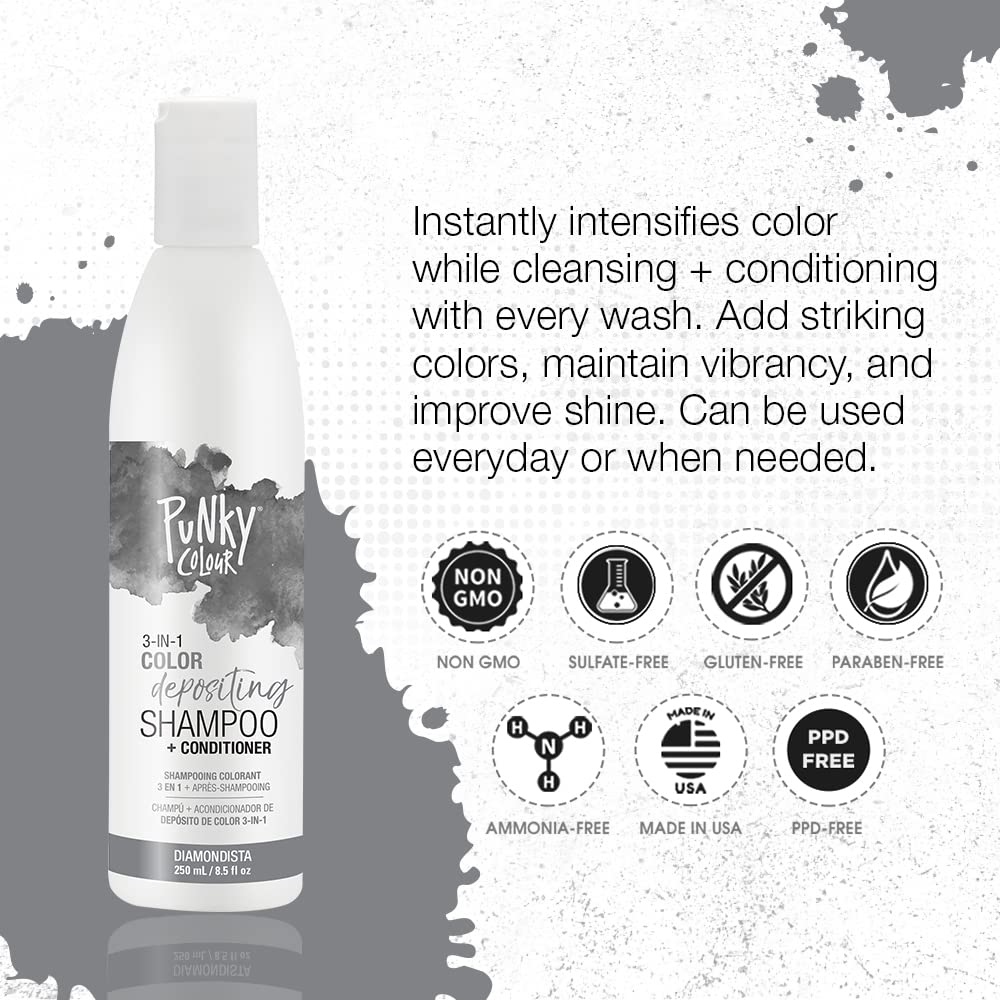 Limpador e condicionador de cabelo com depósito de cor 3 em 1 Punky Colour, 8,5 fl oz. (Diamondista)