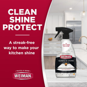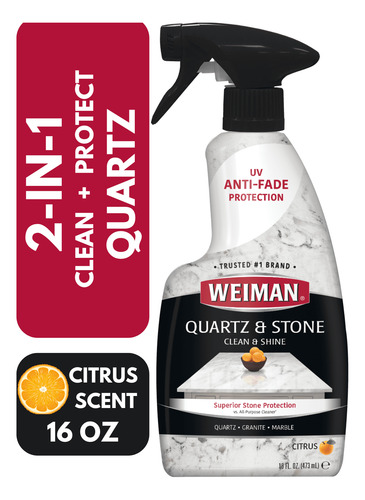 AROMA CÍTRICO FRESCO, BRILHO IMPECÁVEL: limpa, brilha e protege bancadas de quartzo e outras superfícies de pedra seladas. Um aroma cítrico leve e fresco deixará suas bancadas brilhando e sua cozinha com um cheiro incrível!