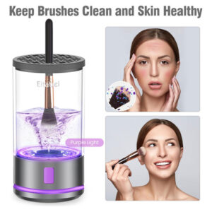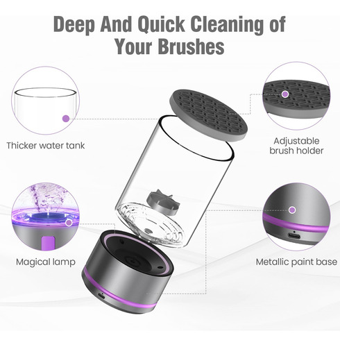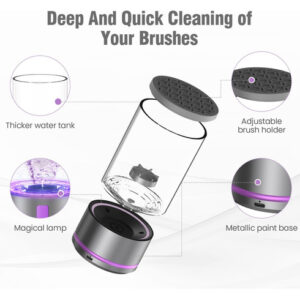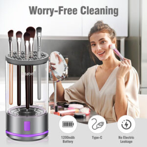 Máquina elétrica de limpeza de pincéis de maquiagem, secadora de pincéis de maquiagem 2 em 1 e lavadora de pincéis de maquiagem combinados, limpador de pincéis de maquiagem giratório automático para pincéis e esponjas de maquiagem de todos os tamanhos – motor potente de 4100 RPM Nosso limpador de pincéis de maquiagem possui um poderoso motor de 4100 RPM, proporcionando uma limpeza profunda e eficiente de seus pincéis de maquiagem. Ao automatizar o processo de limpeza, elimina a necessidade de lavagem manual e economiza um tempo precioso. – Compatibilidade com pincéis de maquiagem de todos os tamanhos Equipado com uma capa fixa de silicone atualizada, nosso limpador pode acomodar uma ampla variedade de tamanhos de pincel, garantindo uma limpeza completa de cada pincel em sua coleção. Observe que a secagem por centrifugação em alta velocidade pode fazer com que as cerdas se espalhem ou se desgastem, por isso recomendamos a secagem natural ao ar livre. – Spin Your Way to CleanUm verdadeiro salva-vidas para quem lava pincéis. Os dermatologistas recomendam limpar seus pincéis cosméticos pelo menos uma vez por semana, se não diariamente, diga adeus às erupções cutâneas e à sujeira! Nosso limpador elétrico automático atualizado remove facilmente resíduos de maquiagem e acúmulo de cosméticos, deixando seus pincéis frescos e prontos para sua próxima rotina de beleza. – Bateria de longa duração Nosso limpador de pincéis de maquiagem é alimentado por uma bateria recarregável de 1200 mAh, que suporta cabo USB tipo C para carregamento rápido. Com uma carga completa, ele pode ser usado até 20 vezes, proporcionando conveniência e flexibilidade. – Design compacto e portátil O tamanho compacto do nosso limpador de pincéis de maquiagem o torna perfeito para viagens, viagens de negócios ou uso diário. Sua portabilidade permite que você o leve aonde quer que sua rotina de beleza o leve. Além disso, também pode ser um ótimo presente para mulheres, tornando-o a escolha ideal para feriados e ocasiões especiais.