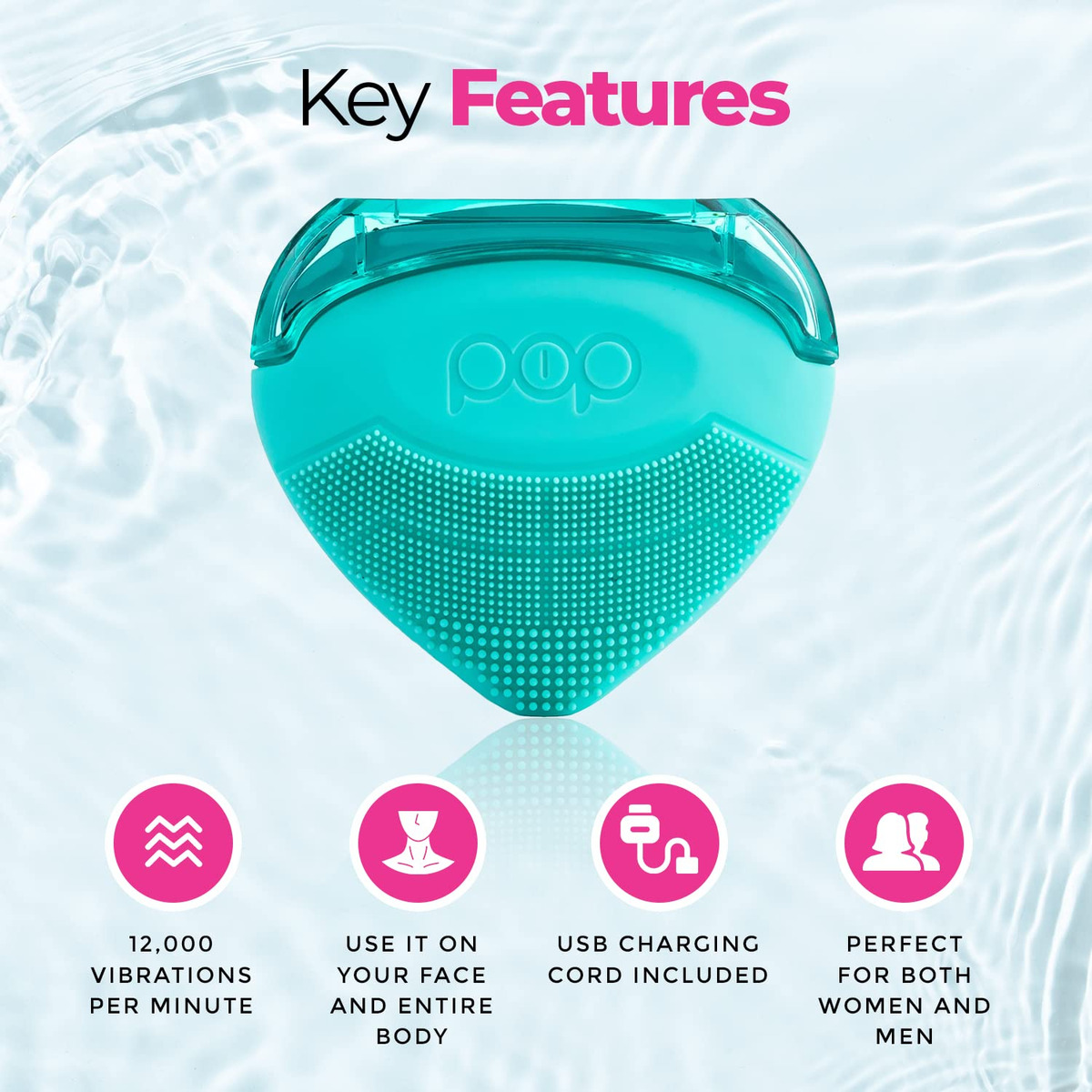 Pop Your Skin Care Routine With more than 12,000 vibrations per minute, the Strawberry contains bristles on one side for cleansing, waves on the backside for massaging and infusing, and a steel edge at the top for exfoliating and extractions. Perfect for both women and men Use it on your face and entire body 12,000 vibrations per minute Compact size for home, gym or travel USB charging cord included Never need to replace brush heads Using Your Strawberry Cleansing, Massaging & Infusing Moisten your skin and apply your favorite cleanser either directly onto your skin or onto the soft silicone bristles of the Strawberry Turn on the device and use in a circular motion around your face, neck or other parts of your body. Rinse & pat dry Apply moisturizer or serum onto the Wave side of the devise or directly on your skin. Press the O button once for regular vibration and a 2nd time for pulse action. Massage in a circular motion. Exfoliating The steel edge at the top of the Strawberry is for exfoliating, perfect for removing dead skin, leaving skin healthy, silky and smooth. While your skin is moist, either after a shower or after applying water to your skin, move the strawberry at a 45-degree angle over your face, arms, legs or any other area of your body that needs exfoliating. Use light pressure to help open pores around your nose, chin, forehead. The exfoliating edge can be used as well for extractions around the nose, chin, or any area that needs some extra attention. Charging & Operating A fully charged Strawberry will hold a charge for many weeks when used as directed. When you start to feel the power of the vibrations becoming weaker, it is time to charge. To turn on your Strawberry press the O in POP. Press again for pulse option. – POP SONIC STRAWBERRY – The Strawberry lets you cleanse, massage and exfoliate your face and body leaving your skin soft, smooth, healthy & glowing. Gentle yet powerful, the Strawberry features 12,000 vibrations per minute. Small & compact, the Strawberry is perfect for home, the gym and travel. – POP SONIC CLEAN. MASSAGE. EXFOLIATE. – pop your skin care routine With more than 12,000 vibrations per minute, the Strawberry contains bristles on one side for cleansing, waves on the backside for massaging and infusing, and a steel edge at the top for exfoliating and extractions. – Perfect for both women and men Use it on your face and entire body 12,000 vibrations per minute Compact size for home, gym or travel USB charging cord included Never need to replace brush heads. – CLEANSING, MASSAGING & INFUSING – Moisten your skin and apply your favorite cleanser either directly onto your skin or onto the soft silicone bristles of the Strawberry Turn on the device and use in a circular motion around your face, neck or other parts of your body. Rinse & pat dry Apply moisturizer or serum onto the Wave side of the devise or directly on your skin. Press the On button once for regular vibration and a 2nd time for pulse action. Massage in a circular motion. – EXFOLIATING – The steel edge at the top of the Strawberry is for exfoliating, perfect for removing dead skin, leaving skin healthy, silky and smooth. While your skin is moist, either after a shower or after applying water to your skin, GENTLY move the strawberry at a 45-degree angle over your face, arms, legs or any other area of your body that needs exfoliating. Use light pressure to help open pores around your nose, chin, forehead and other areas around your face.