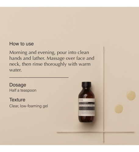 Limpador facial Aesop Fabulous Limpa suavemente sem descascar Limpador suave derivado de azeitona com vegetais purificantes e hidratantes Tamanho de viagem 3,3 onças/100 mL