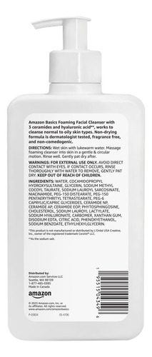 Limpador facial espumante Amazon Basics com ceramidas e ácido hialurônico, sem perfume, 12 ml, pacote com 1 a 1 frasco de 12 ml de limpador facial espumante Amazon Basics – Formulado com 3 ceramidas e ácido hialurônico – Testado dermatologicamente, sem fragrância e não comedogênico – Fórmula que não resseca, perfeita para pele normal a oleosa – Pele úmida, aplique suavemente o limpador em um movimento circular e enxágue – Se você gosta do limpador facial em espuma CeraVe, convidamos você a experimentar o Amazon Basics Foaming Facial Cleanser