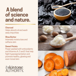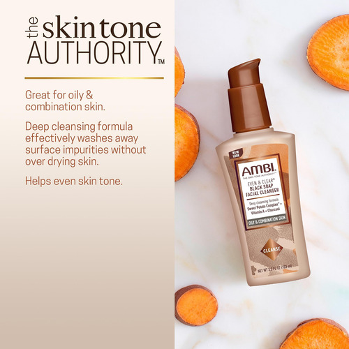 Limpador facial Ambi Even & Clear Purifying Charcoal Black Soap com complexo de batata-doce rico em nutrientes | Ajuda a uniformizar o tom de pele | 3,5 onças — Limpador facial de carvão vegetal: este sabonete facial contém carvão vegetal absorvente de óleo para ajudar a eliminar as impurezas da superfície, além de manteiga de karité para fornecer o equilíbrio perfeito de umidade à pele para combater o ressecamento excessivo — Com o complexo de batata-doce: conhecida como “alimento de beleza”, a batata-doce é repleta de antioxidantes e vitaminas A, C e E que ajudam a combater a hiperpigmentação e promovem uma pele saudável, brilhante e uniforme – The Ambi Regime: fabricamos produtos recomendados por dermatologistas para limpar, hidratar e nutrir, ajudar a atenuar manchas escuras e descoloração, tratar acne e até mesmo o tom de pele, além de outras soluções para peles ricas em melanina. Sua jornada de cuidados com a pele: para uma pele lisa, uniforme e perfeita, experimente nossos produtos de limpeza, sabonetes em barra, soros, hidratantes e cremes desbotantes formulados especificamente para e por pessoas com diversos tons de pele – The Skin Tone Authority: Há 50 anos, a Ambi está empenhada em atender às necessidades de cuidados com a pele de mulheres negras, combinando ciência e natureza para criar produtos acessíveis, produtos para a pele de alta qualidade