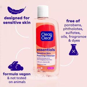Limpador facial em espuma Clean & Clear Essentials, sabonete facial diário sem óleo com glicerina para remover sujeira, óleo e maquiagem que causam acne sem secar demais, 8 ml (a embalagem pode variar) – 8 onças fluidas de limpador facial espumante Clean & Clear Essentials para limpar a pele de forma suave e eficaz sem ressecar demais – O sabonete facial diário remove sujeira, óleo e maquiagem para uma pele limpa, revigorada e com aparência mais saudável – Pretendido para uso diário, este limpador facial contém ingredientes derivados do óleo de coco e remove as impurezas enquanto enxagua para uma pele com aparência e sensação saudáveis — Este sabonete facial tem uma espuma suave, mas rica, para ajudar a evitar erupções cutâneas e apresenta uma fórmula exclusiva sem óleo que deixa a pele limpa e revigorada — Recomendado como parte de uma rotina de 3 etapas com o adstringente e hidratante Clean & Clear Essentials, use este limpador facial misturando com água, espalhando espuma espumosa no rosto e depois enxaguando bem — Clean & Clear Essentials Facial Foaming O limpador limpa a pele e ajuda a mantê-la saudável. Com ingredientes derivados do óleo de coco, a rica espuma de limpeza deste sabonete facial diário remove suavemente a sujeira, o óleo e a maquiagem sem ressecar demais a pele. Sua fórmula exclusiva sem óleo foi projetada para uso diário e deixa a pele limpa e revigorada. Use este limpador facial espumante como parte de uma rotina de 3 etapas com o adstringente Clean & Clear Essentials Deep Cleaning e o hidratante de dupla ação Essentials.