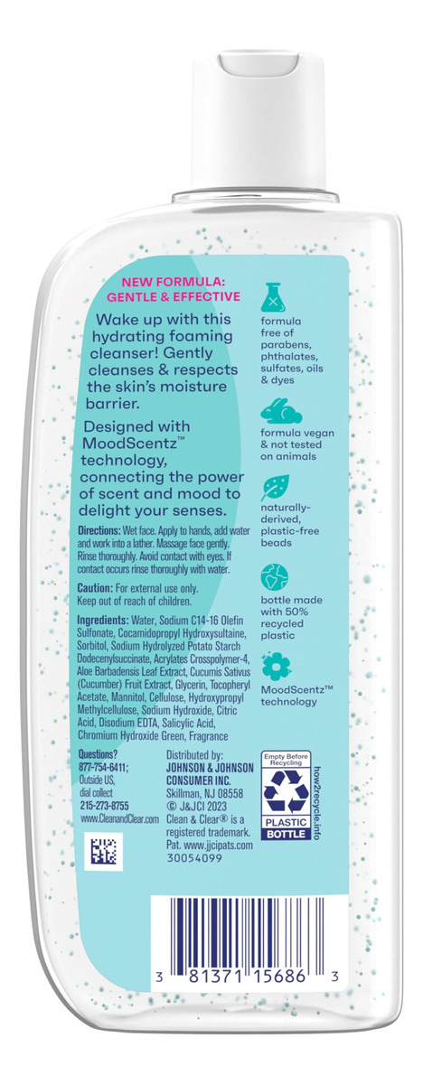 Limpador facial hidratante sem óleo Clean & Clear Morning Burst com extratos de BHA, pepino e aloe, o sabonete facial remove suavemente as impurezas que obstruem o óleo e os poros, 8 fl. oz – 8 onças fluidas de limpador facial hidratante sem óleo Clean & Clear Morning Burst com BHA, extrato de pepino e aloe limpa suavemente enquanto remove o óleo e remove as impurezas que obstruem os poros – Lavagem facial diária espumante suaviza a pele enquanto limpa suavemente. A fórmula sem óleo deste limpador é feita com extrato de BHA, pepino e aloe para uma limpeza refrescante que respeita a barreira de umidade da pele – O limpador facial espumante possui a tecnologia MoodScentz para conectar o poder do aroma e do humor para encantar seus sentidos – Este sabonete facial espumante diário é formulado sem parabenos, ftalatos, sulfatos, óleos e corantes. A fórmula vegana não é testada em animais e é embalada em uma garrafa feita de 50% de plástico reciclado – Para usar, aplique nas mãos, adicione água e depois forme espuma. Massageie suavemente o limpador em seu rosto e enxágue. Acorde com este limpador espumante suave e eficaz como parte de sua rotina matinal de cuidados com a pele