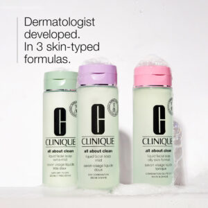 Sabonete líquido de limpeza facial Clinique All About Clean, suave, 6,7 fl. oz. — Limpador facial suave: esse sabonete facial suave é o primeiro passo para uma pele com aparência saudável. A fórmula de enxágue rápido do nosso sabonete facial é suave, mas completa. – PROTEGE O EQUILÍBRIO DE HIDRATAÇÃO DA PELE: O sabonete facial Cliniques tem uma espuma macia e não seca que deixa a pele confortável e revigorada, nunca esticada ou seca. – Desenvolvido por dermatologistas: o sabonete facial líquido está disponível em 3 fórmulas do tipo pele: pele extra suave, suave e oleosa. – Experiência clínica: testado por dermatologistas. 100% livre de fragrâncias. – BASEADO NA CIÊNCIA DERMATOLÓGICA: Como uma marca guiada por dermatologistas, o compromisso da Clinique com a segurança começa com a ciência dos cuidados com a pele. Fazemos parcerias com as melhores mentes em dermatologia e formulamos para todos os tipos, tons e preocupações de pele a serviço de todas as peles.