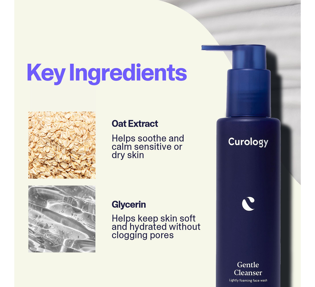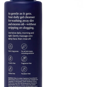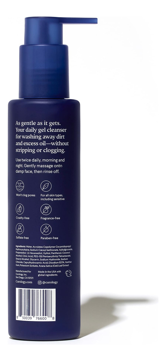 Lave a sujeira e o excesso de óleo sem descascar a pele ou obstruir os poros com o Curologys Gentle Cleanser. A textura de gel levemente espumante é feita para todos os tipos de pele, mas é especialmente apreciada por pessoas com pele sensível. Formulado por dermatologistas com extrato calmante de aveia, este sabonete facial sem sulfato limpa suavemente, enquanto ajuda a manter a barreira da pele equilibrada e saudável. Essencialmente, se você está procurando uma adição fácil à sua linha de cuidados com a pele, o Gentle Cleanser é o seu produto preferido para o cuidado da pele facial. Como usar: Lave com nosso limpador suave duas vezes ao dia. Após a limpeza, aplique o Curologys Cream Moisturizer ou Gel Moisturizer. De manhã, continue com o protetor solar diário Curologys SPF 30. – LIMPADOR FACIAL SUAVE Gel de limpeza facial diário com espuma leve que acalma e limpa, mantendo a barreira da pele equilibrada – ACALMA E EQUILIBRA Formulado com glicerina hidratante e extrato de aveia, projetado para ajudar a acalmar a pele seca sem tirar a oleosidade saudável da pele ou obstruir os poros – AUMENTE O NÍVEL DE SUA ROTINA Projetado para pessoas com sensibilidade, pele seca, oleosa ou com tendência a manchas para usar de manhã e à noite. Perfeito para homens, mulheres, adolescentes ou qualquer pessoa que queira complementar sua rotina existente – TESTADO POR DERMATOLOGISTAS Sem fragrâncias, sem sulfatos e sem parabenos, 100% vegano, sem crueldade, certificado pela Leaping Bunny – CUROLOGY Fundado, desenvolvido e testado por dermatologistas