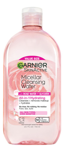 Água micelar Garnier com água de rosas e glicerina, limpador facial hidratante e removedor de maquiagem, para todos os tipos de pele, vegana, livre de crueldade, 23,7 fl oz (700 mL), 1 unidade — Limpador facial hidratante tudo-em-um: nossa água de limpeza micelar com água de rosas limpa suavemente a pele, remove a maquiagem e hidrata em uma única etapa, sem esfregar ou enxaguar com força. Experimente com nossas almofadas ecológicas micelares reutilizáveis Garnier – a água micelar número um da América*: criamos opções de limpeza para todas as necessidades da pele: hidratar, iluminar, matificar, remover maquiagem à prova d’água e pele sensível. *com base nos dados de vendas da Nielsen, unidades vendidas, ano inteiro de 2021 – Removedor de maquiagem com água micelar: como um ímã, o limpador facial Micellar Water remove maquiagem, sujeira, protetor solar e excesso de óleo. Não é necessário enxaguar após o uso. Adequado para todos os tipos de pele, mesmo para peles sensíveis. Sem óleo, álcool e fragrâncias – Garnier Skin Care: desenvolvemos o Garnier SkinActive com fórmulas suaves para deixar sua pele fresca e saudável, independentemente do tipo de pele; encontre o sabonete facial, hidratante, creme de leite, removedor de maquiagem, creme para os olhos, sérum ou máscara para você – Inspirado pela natureza: a Garnier oferece uma variedade de produtos para suas necessidades de cuidados com o cabelo e a pele, desde xampus, colorantes e produtos para fórmulas que limpam, hidratam e reparam a pele