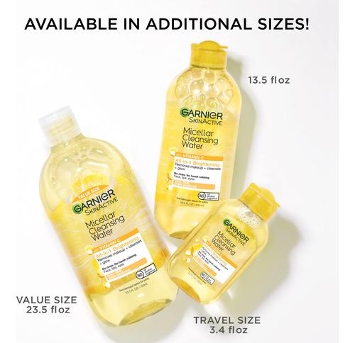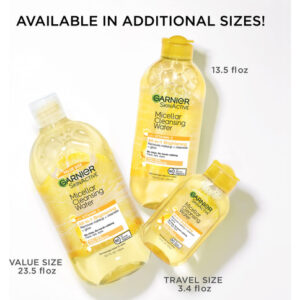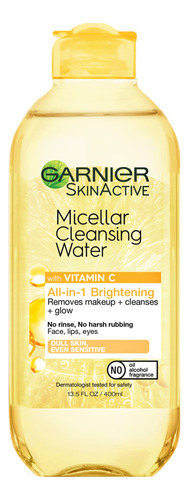 Água micelar Garnier com vitamina C, limpador facial e removedor de maquiagem, iluminadora e hidratante, para todos os tipos de pele, vegana, livre de crueldade, 400 ml (13,5 fl oz), 1 unidade — A água micelar de limpeza com vitamina C limpa suavemente a pele, remove a maquiagem e ilumina a pele opaca em apenas uma etapa, sem esfregar ou enxaguar com força — a água micelar é eficaz, mas suave; é simples a água de limpeza micelar remove a sujeira, a maquiagem e o excesso de oleosidade, tudo com apenas alguns toques; sem enxágue, sem esfregar com força, apenas pele refrescada e rosto lavado, limpo e limpo impurezas – Água micelar número 1 das Américas (com base nos dados de vendas da Nielsen, unidades vendidas, no acumulado da semana encerrada em 8/1/2020): indispensável para várias tarefas; use como limpador facial pela manhã e como removedor de maquiagem à noite – Tecnologia micelar: as micelas funcionam como um ímã para limpar e remover suavemente a maquiagem; sem esfregar com força; sem resíduos oleosos – Garnier Skin Care: Desenvolvemos o Garnier SkinActive com fórmulas suaves para deixar sua pele fresca e saudável, independentemente do seu tipo de pele; encontre o sabonete facial, hidratante, creme bb, removedor de maquiagem e olhos creme, soro ou máscara para você