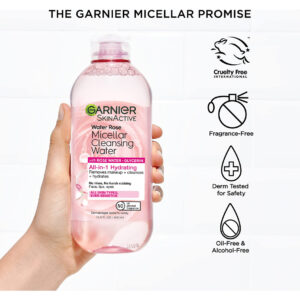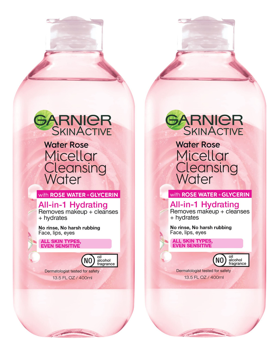 Água micelar Garnier com água de rosas e glicerina, limpador facial hidratante e removedor de maquiagem, para todos os tipos de pele, vegana, livre de crueldade, 400 ml (13,5 fl oz), 2 unidades — Limpador de água micelar micelar multifuncional: essa água micelar hidratante multifuncional é um limpador facial surpreendentemente poderoso e removedor de maquiagem sem enxágue que é suave para a pele; vegana sem álcool, óleos ou fragrâncias — Para todos os tipos de pele: Como um ímã, as micelas capturam e removem sujeira, óleo e maquiagem sem esfregar ou enxaguar com força, deixando sua pele perfeitamente limpa sem ressecar – Garnier SkinActive foi desenvolvido com fórmulas suaves e ingredientes de origem natural para deixar sua pele fresca e saudável, independentemente do tipo de pele, encontre o sabonete facial, hidratante, removedor de maquiagem ou máscara para você – Coleção SkinActive: revele uma pele limpa, saudável e radiante com nossa linha de produtos de limpeza e hidratantes diários, com fórmulas para atender às necessidades de cada tipo de pele